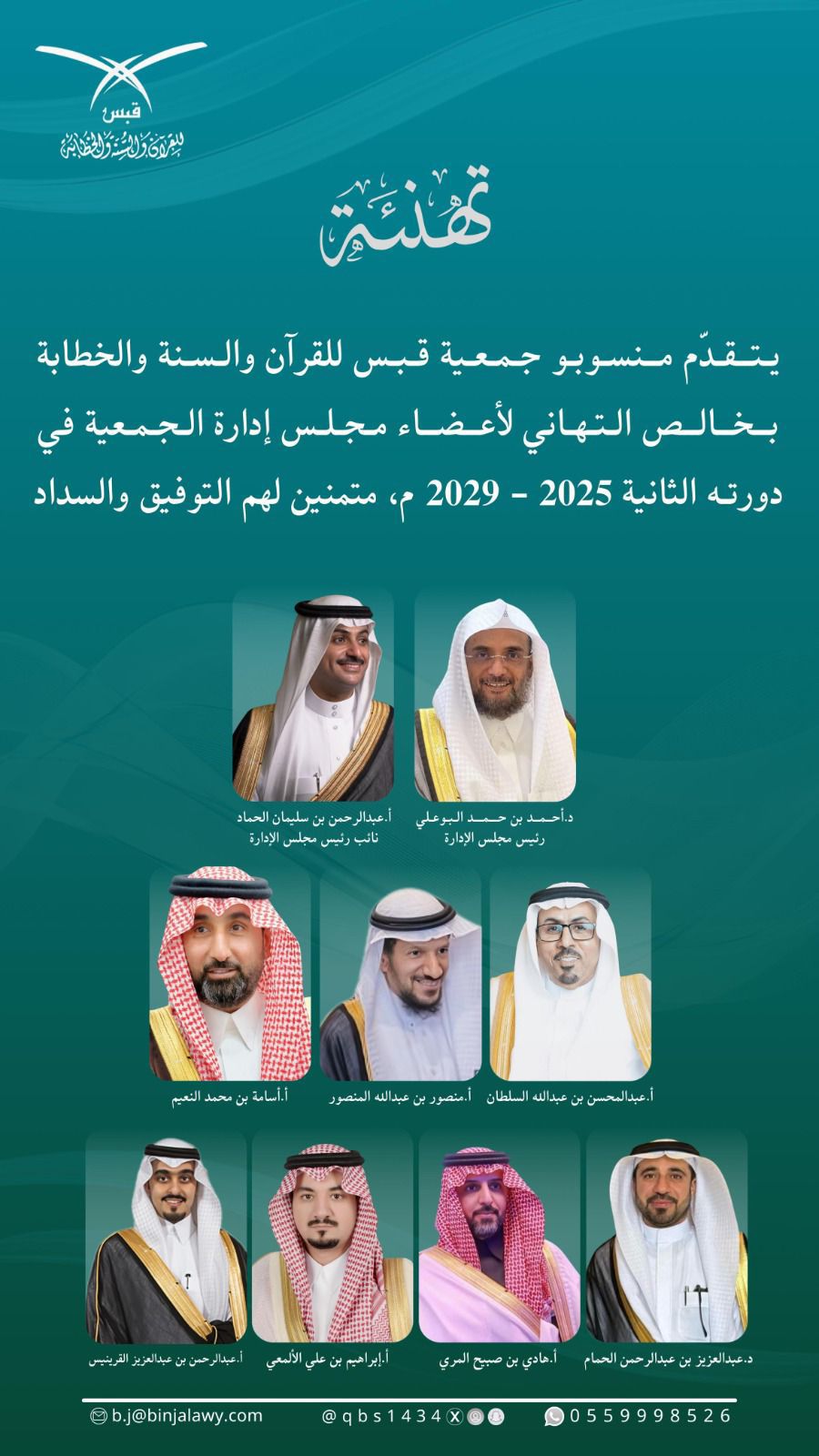 بالتزكية … ” البوعلي ” رئيسًا والحماد نائبًا لمجلس إدارة جمعية قبس للقرآن والسنة والخطابة في دورتها الثانية