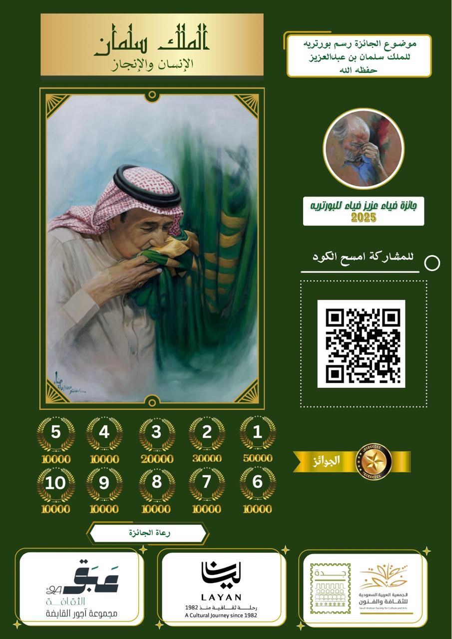 تأتي جائزة ضياء عزيز ضياء للبورتريه 2025 لتسليط الضوء على شخصية خادم الحرمين الشريفين الملك سلمان بن عبدالعزيز آل سعود – حفظه الله –، بوصفه رمزًا للقيادة والإنسانية.