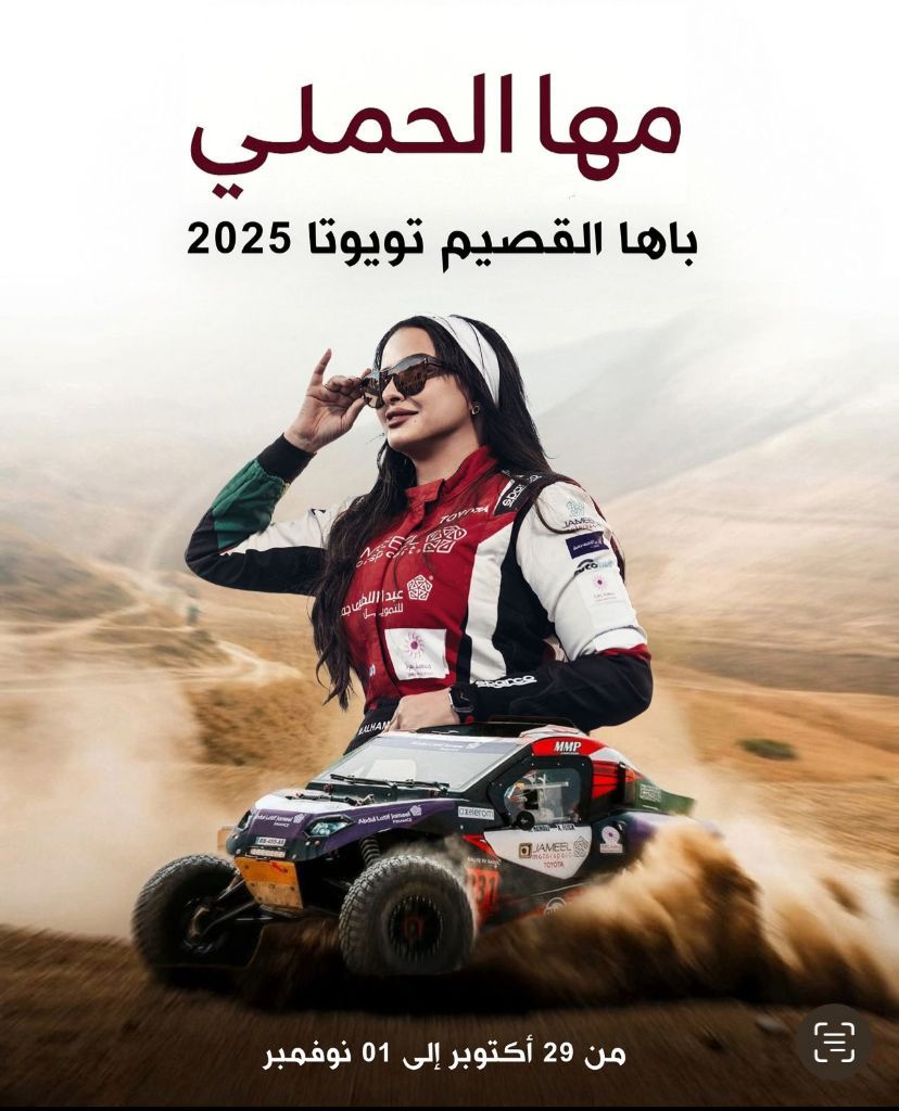 تشارك البطلة السعودية مها الحملي في منافسات “باها القصيم تويوتا”، الجولة الثانية من بطولة السعودية تويوتا 2025، والتي تُقام بتنظيمٍ من الاتحاد السعودي للسيارات والدراجات النارية، بالتعاون مع وزارة الرياضة وإمارة منطقة القصيم وأمانة المنطقة، وبرعاية جميل لرياضة المحركات الشريك الرسمي، وبدعم من عبداللطيف جميل للتمويل وعبداللطيف جميل للأعمال (أوتوهب) وشركة أكسيلروم، إضافةً إلى جمعية زهرة لسرطان الثدي الخيرية كشريك لخدمة المجتمع.