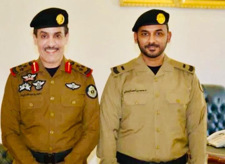 قلد قائد مدينة تدريب مكه المكرمه العميد أحمد الميمان ، الرئيس رقباء مهندس محمد بن أحمد الزهراني ،رتبته الجديده بعد صدور قرار معالي مدير الامن العام ،