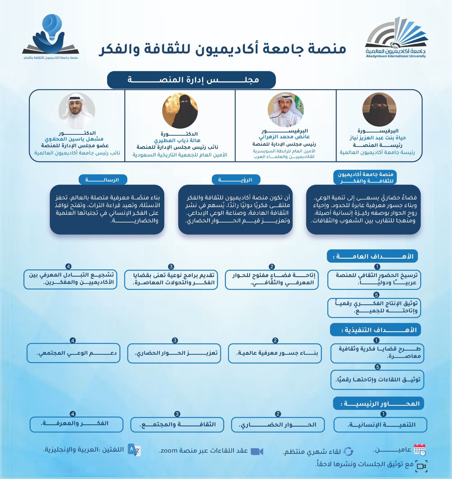 فضاء حضاري يسعى إلى تنمية الوعي، وبناء جسور معرفية عابرة للحدود، وإحياء روح الحوار بوصفه ركيزة إنسانية أصيلة، ومنها للتقارب بين الشعوب والثقافات.