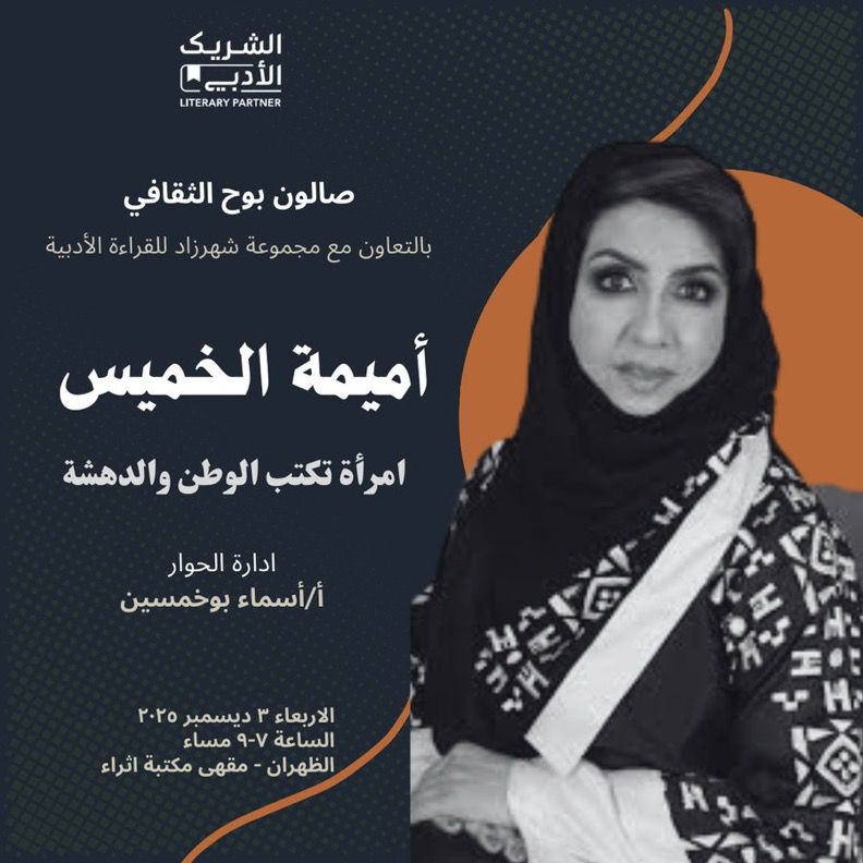 ومن المقرر أن يُقام اللقاء يوم الأربعاء 3 ديسمبر 2025، من الساعة 7 إلى 9 مساءً، وذلك في مقهى مكتبة إثراء بالظهران، وسط توقعات بحضور نوعي من القرّاء والمهتمين بالشأن الأدبي.